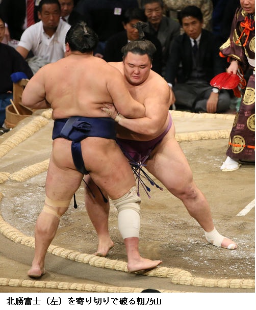 朝乃山は2敗を守り、「上手は1枚だったがしっかり引きつけられている。三役の雰囲気にも慣れてきたので、1日、一番やっていくだけだ。横綱についていきたい」と落ち着いた様子で話していました。