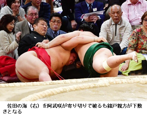 ▽琴恵光に佐田の海は佐田の海が寄り切り。
