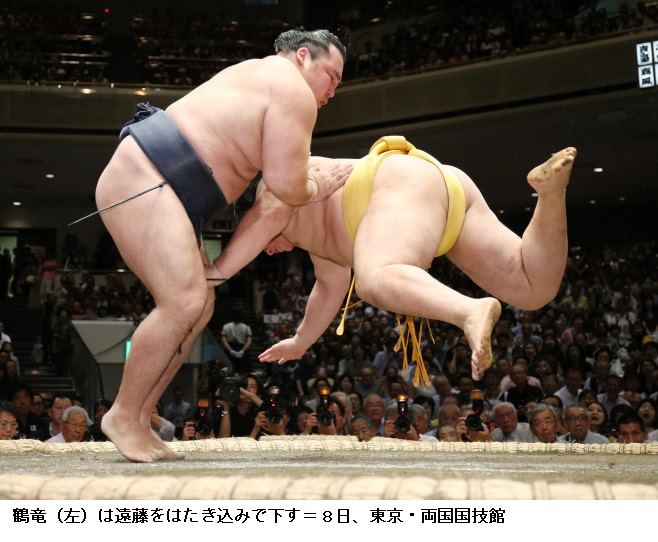 △横綱 鶴竜に三役返り咲きの小結 遠藤は、鶴竜がはたき込みで勝って初日白星でスタートしました。 (NHK WEB NEWS 2019年9月8日 19時40分)