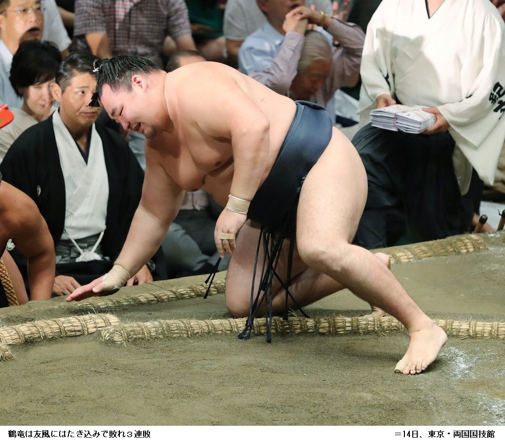 友風にはたき込みで敗れ3連敗の横綱 鶴竜は「立ち合いしっかりと当たれればよかったけど。引き技は頭にはあったけど相手がうまかったのでしょう。ちゃんと集中できていないのかな。気持ちの面で戦えていない」と話しました。