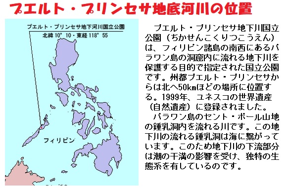 セントポール山の地下鍾乳洞から南シナ海につながるこの川は、全長約8.2㎞と世界最長を誇ります。また、潮の影響を受けた独特の生態系をもつ下流域の自然とともに、その類まれなラグーンの景観美により1999年、世界遺産に認定されました。