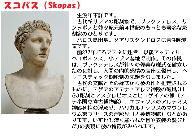 また、プリニウスは、マウソロスの霊廟を手がけたスコパスが神殿の柱に浮き彫りを施したと述べています。
