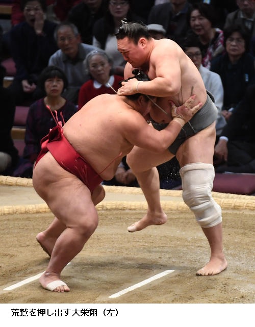 他の大関陣は高安が平幕嘉風をはたき込んで7勝目、豪栄道は平幕千代大龍を引き落として6勝目を挙げた。