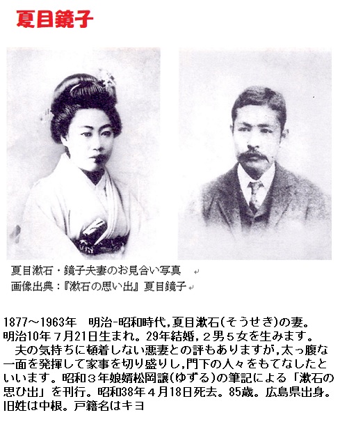 漱石は持病の神経衰弱に苦しみ、妻の鏡子にたびたび暴言を吐くなど、辛くあたった時もあったそうです。ただ、夫婦仲は悪くなく、鏡子は漱石の精神病を理解し、支えになってくれました。