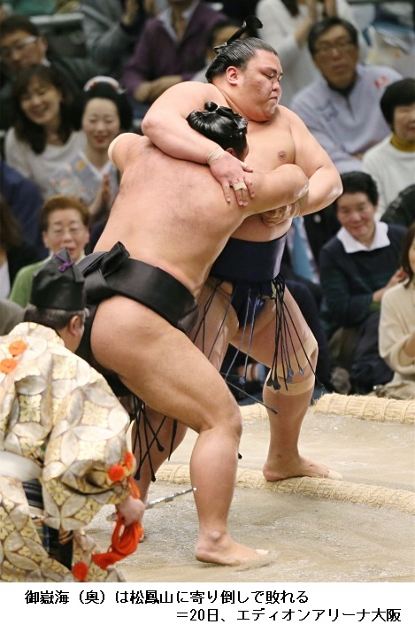 松鳳山に御嶽海は、松鳳山が寄り倒し。