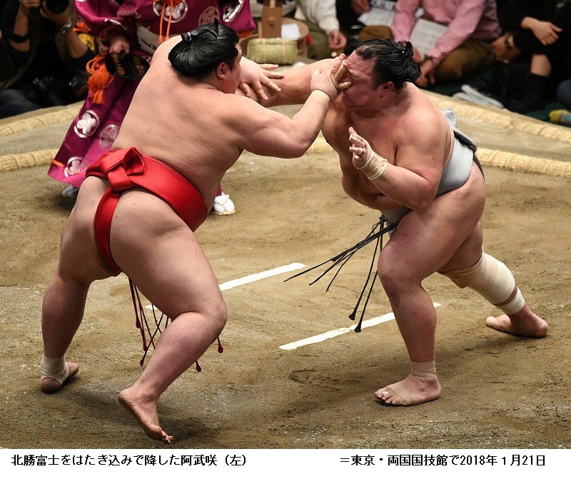 北勝富士に阿武咲は、阿武咲がはたき込み。