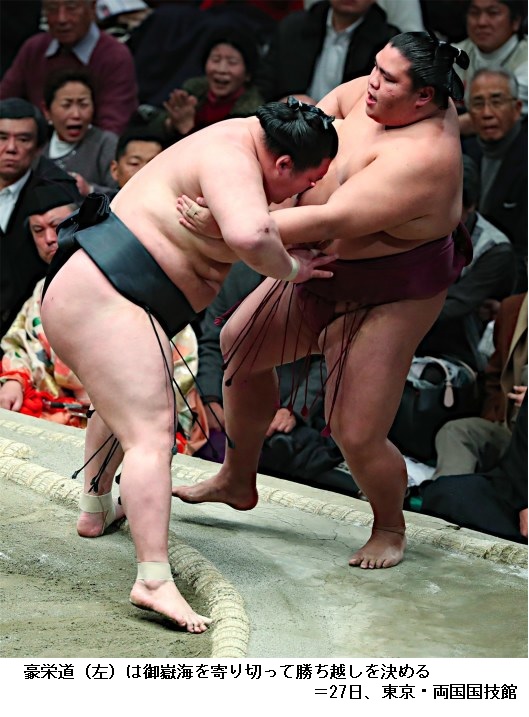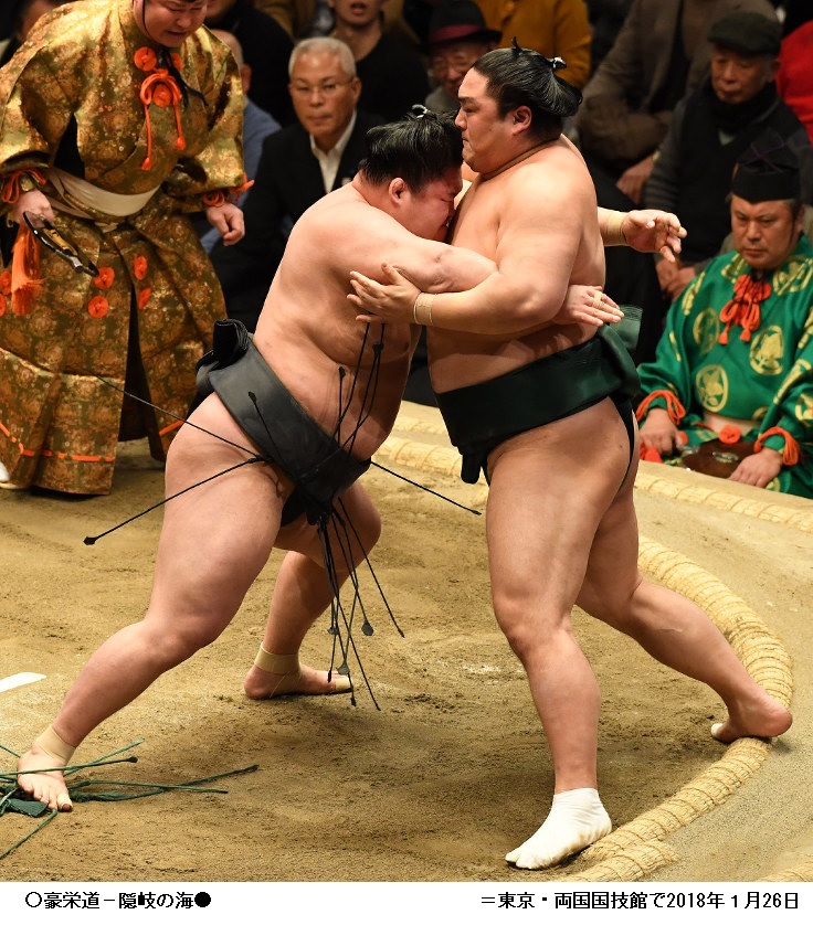 大関・豪栄道に隠岐の海は、豪栄道が寄り切り。豪栄道は7勝目です。
