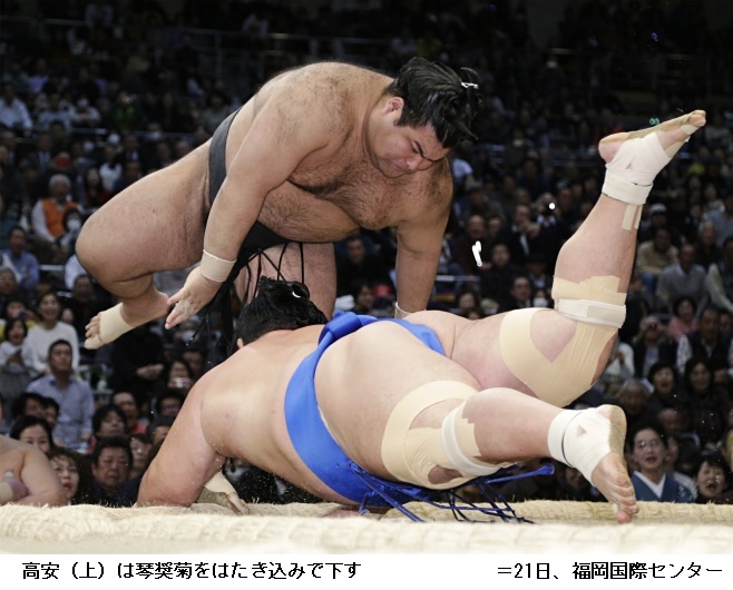 大関・高安に琴奨菊は高安がはたき込み。角番の大関・高安は7勝目です。