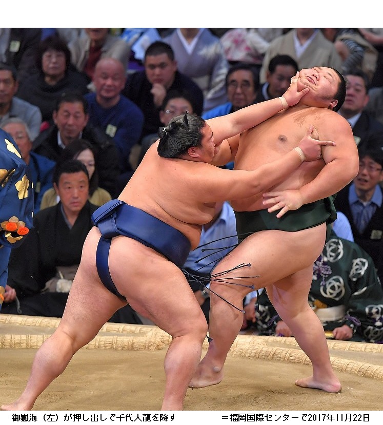 千代大龍に大栄翔は、千代大龍が押し出し。