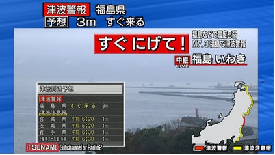 福島県でM7.4の地震発生、高さ3mの津波警報発令