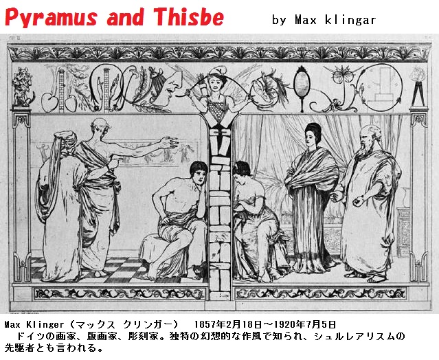 この話はギリシア神話およびローマ神話の一つで、Ovidius(オウィディウス)の『変身物語』に収録されています。また、Shakespeare(シェイクスピア、1564~1616年)の戯曲『ロミオとジュリエット』のモチーフになった物語としても知られています。