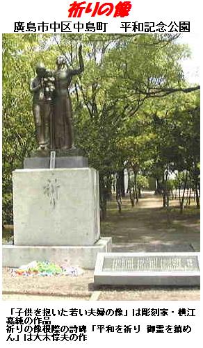 広島の「原爆死没者慰霊式・平和祈念式」が行われる平和記念公園には、横江嘉純氏の「祈りの像(子供を抱いた若い夫婦の像)」があり、その下に爺の伯父(母の兄)に当たる大木惇夫の「平和を祈り 御霊を鎮めん」の詩文が刻まれている。