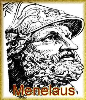 Menelaus(メネラウス)はギリシャの数学者、天文学者であり。直線の類似物として、曲面上の測地線を始めて考察し、Sphaerica (スファーノリカ、「球面論」3巻) がアラビア語の翻訳で生き延びた唯一つの著作物である。メネラウスは三角法の歴史に登場し、また月のクレーターに名前を残しているが、その他のことについての詳細は不明である。