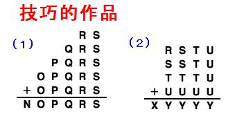 右の暗号覆面算の2題はなんの変哲もないようであるが、解いてみると