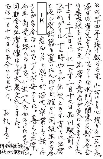 3人の連絡を信用しないわけではなかったが、電話連絡で聞き違いなどあってはということで、改めて日時と場所を葉書に印刷して、出席者各人に発送すると言うお節介をやらかしてしまった。