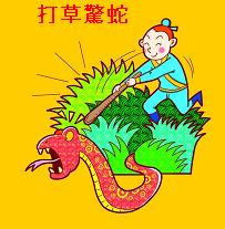 打草驚蛇(だそう-きょうだ):草をたたいてその奥にいる蛇を驚かす意から、あるものを懲らしめることによって、他のものに警告するたするたとえ。後に、よけいなことをして、かえってつまらない災難を受けるたとえ。無用のことをしてかえって相手に警戒心を起こさせてしまうたとえ。▽「打草」は草をたたく、「驚蛇」は蛇を驚かす意。一般に「草を打うって蛇を驚かす」と訓読を用いる。 出典 『南唐近事(なんとうきんじ)』 鄭文寶(ていぶんぽう、953~1013年)著