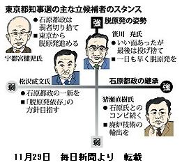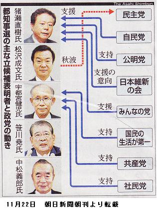 歳末総選挙で、東京都知事選の方は全くボヤケてしまっているようだ。今朝のウェブニュースより