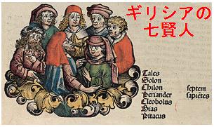 ・アテナイの立法者ソロン ・ミレトスの哲学者タレス ・スパルタの民選長官キロン ・プリエネの僭主ビアス ・リンドスの僭主クレオブロス ・ミュティレネの僭主ピッタコス ・ケナイの農夫ミュソン