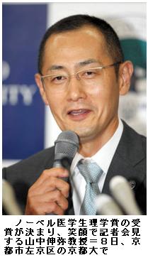 山中氏ノーベル賞:新技術開発にも波及 国も集中的に投資 ――ノーベル医学生理学賞を受賞することに決まった京都大iPS細胞研究所の山中伸弥・同大教授(50)によるiPS細胞の開発は、他分野の研究を加速させた。中でも注目されているのは、iPS細胞を介さずに、皮膚細胞などから直接、神経や心臓など必要な細胞を作る「ダイレクト・リプログラミング」と呼ばれる技術だ。/研究の歴史はiPS細胞より古いが、成功例がほとんどなかった。しかし、マウスの皮膚細胞に4種類の遺伝子を導入するというiPS細胞の作成方法が刺激となり、複数の遺伝子を組み入れることで、成功例が相次ぐようになった。/慶応大のチームは今年8月、心筋梗塞(こうそく)を起こしたマウスの心臓に三つの遺伝子を入れて、心筋細胞を再生させる実験に成功したと発表した。チームの家田真樹・特任講師は「iPS細胞の論文は、何度も繰り返し読んだ」と話す。京都大iPS細胞研究所の妻木範行教授らは、ヒトの皮膚細胞から軟骨細胞を作り出した。/iPS細胞研究は、世界をリードできる有望な分野と政府も位置づける。今夏まとめた日本再生戦略では、集中的に支援することを明記し、iPS細胞を含む再生医療分野を新産業の柱に育てる目標を掲げた。/国の予算はここ2年、毎年100億円以上計上している。中でも大きな研究の枠組みが、文部科学省と厚生労働省が進める「再生医療の実現化プロジェクト」だ。京都大を筆頭に、慶応大、東京大、理化学研究所発生・再生科学総合研究センターの4機関を拠点とし、iPS細胞の活用に必要な研究や技術開発を進めている。/患者数が少ないため治療法の研究が進まない難病の原因解明や創薬でも、iPS細胞を使った国のプロジェクトが始まる。病気の種類ごとに4カ所程度の拠点を設置。患者から提供を受けた細胞を使って難病iPS細胞を作り、それを使って創薬を目指す。現在、文科省へ公募のあった研究内容の審査が行われている。 〔毎日新聞 2012年10月09日 07時00分〕