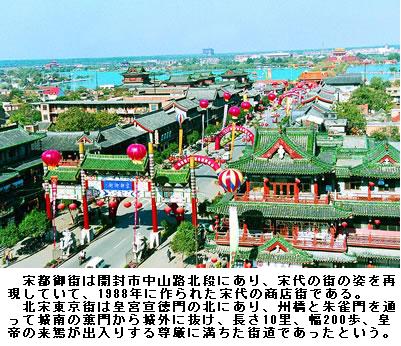 ※御街とは、天子の通る大通りの意。北宋〔960~1127年〕の都、東京〔とうけい、今の河南省開封〕内の、大内すなわち宮城の南正面の門「宣徳門」から、旧京城すなわち内城の南正面の門「朱雀門」に至る幅約三○○メートルの道路。