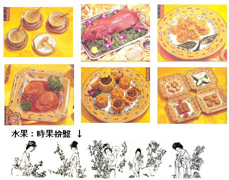 鵪子(あんし)=ウズラの卵 腰子(ようし)=腎臓のこと。とくに豚の腎臓は中国料理では盛んに用いられる 蕈(しん)=きのこ 索粉(さくふん)=青大豆の粉で作った索麺(そうめん) 碁子(きし)=本来碁石のことであるが、小麦粉を水で固く練って、板の上で薄くしたものを、竹筒の切り口で押し切ったものらしい。これを煮て黄粉をかけた「碁子麺(きしめん)」と呼ばれる点心の菓子があったという。