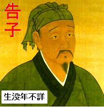 「告子は『人間の本性は善もなければ不善もない』と言い、ある人は『人間の本性は善をすることもできれば、不善をすることも出来る。だから文王・武王のような聖王が現れれば人民はみな善を好むようになり、幽王・厲王のような暴君が現れれば人民はみな乱暴なことを好むようになる』と言っております。また別の人は『本性の善い人もいれば善くない人もいる。だから聖天子尭の下にも象〔しょう、舜の異母弟〕のような悪人が出、瞽瞍〔こそう、舜の父〕のような悪人の子にも舜のような聖人が顕れ、また兄の子に紂王のような悪人を持ち、かつそれを君主としながら微子啓(びしけん)や、王子比干(ひかん)のような賢人が現れたのだ』と言います。ところが、先生は『人間の本性は善だ』とおっしゃるのですが、これらの意見はみな間違いでございますか」