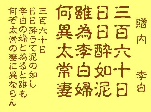 この詩は李白が安陸(今の湖北省)で結婚生活を送っていたとき、妻の許氏に贈った詩という。李白は後漢の周澤の故事にことよせ、自分を太常になぞらえた詩を妻に贈ったのであろう。李白は毎日酔いつぶれて妻を放っておいたのだろうか。しかし、許夫人との間に二人の子を設けているということである。