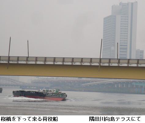 今朝は昨夜の雨が未だ止まず、外出できず。朝食後、雨も止んだようなので、花川戸のクロネコに立ち寄り、駒形橋を渡って、隅田川沿いに北上。東武線隅田川橋梁を過ぎたところから、テラスに降りて北上。白鬚橋を渡って帰宅しようと思ったのだが、桜橋を過ぎてしばらく北上した所で、雨が降り出したので、遊歩道に上がり、引き返し桜橋を渡って帰宅した。