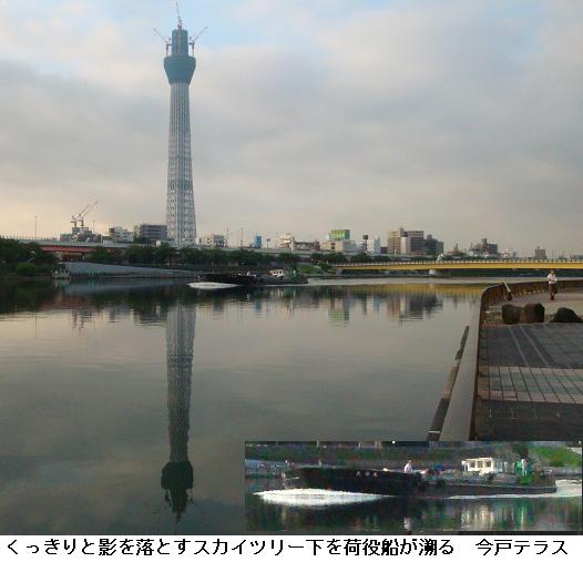 今朝も桜橋~水神大橋間の隅田川を一巡。どこやら秋の気配は見え始めているのだが、お天道様が姿を現すと暑い。とくに風が無いので、余計に蒸す。