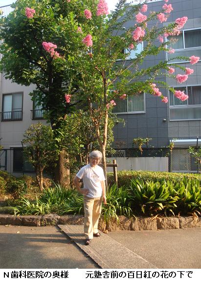 元塾舎の前には百日紅のピンクの花が開いていた。