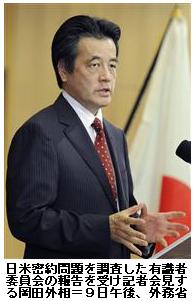 「非核三原則はまやかしだったのかと情けない思いだ」。広島や長崎の被爆者、有識者と共に1日、非核三原則の厳守や法制化を求める声明を全国会議員に送ったばかりの広島県原爆被害者団体協議会の坪井直(すなお)理事長(84)は、「核持ち込みに文句を言わせなかった米国政府にも、核搭載艦船の寄港を認めながら国民に対して『ない』とごまかしてきた日本政府にも、ほんまに腹が立つ」と憤った。/長崎原爆遺族会顧問の下平作江さん(75)も「被爆者を侮辱し、国民をだましたことになる」と怒りをあらわにした。長崎原爆被災者協議会の谷口稜曄(すみてる)会長(81)は「自民党政権は半世紀にわたり国民をだまし続けてきた。絶対に許せない。政権交代で密約を暴いたからには非核三原則の法制化に取り組むべきだ」と求めた。【加藤小夜、錦織祐一、下原知広】
