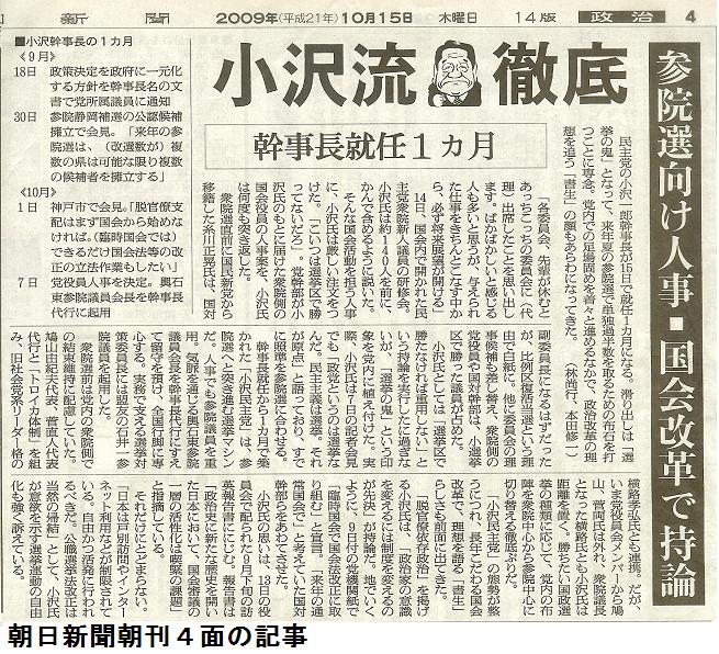 自民党の中枢にいながら、政治家としての頂点、総理大臣の座を手中にしながらの決意はまさしく己の栄華よりも日本の改革を優先した判断であるとも取れる。小沢は自民党政権の中枢にいながら自民党政治の欠陥を読みきっていたのだろうか? 今になっても、小沢の経歴の中に自民党の中枢にいたことをあげつらう人がいるが、政治家として、また本当に有能な人間が自然とその組織の中で有用な地位についた事に何故不審を抱くのだろうか。自民党の中で何も出来ない優柔不断の大人しい人間が国家の変革を目指せるとでも言いたいのだろうか。能力のある小沢だからこそ、何処でも力量を発揮し、かつ自民党を飛び出ることも出来たのではないだろうか?