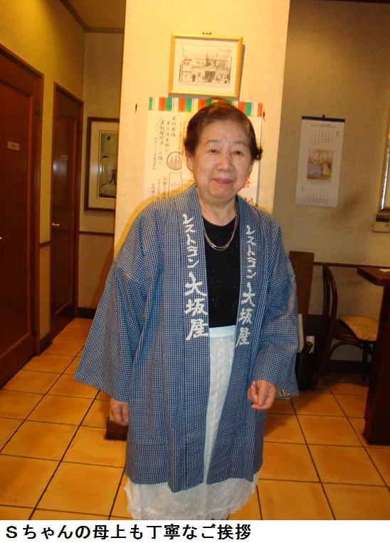 そこへ、YK兄とIN兄が来訪。しばらく、先客は婆様に任せて、爺は旧友と仕事場で昔話等をして、11時45分頃、3人で予約してあったレストラン大坂屋に出掛ける。ここの兄妹は2人して、かつての兼愛塾に通った、塾友である。妹のSちゃんが事前に連絡してくれたのかAちゃんを呼んでくれた。Sちゃんの母上までお店に出て来て挨拶してくださり、恐縮した。兄上のH氏ともお会いしたが、厨房で忙しそうだったので、写真に撮ることはできなかつた。2時間ぐらい大阪屋で話が弾み、大坂屋を出たのは2時過ぎになっていた。
