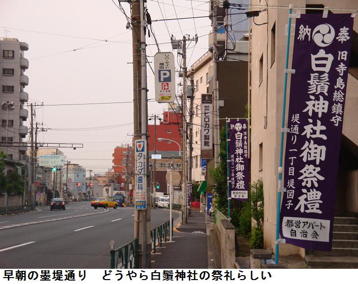 白鬚橋を含む明治通り、橋場一帯の人々は石浜神社の氏子である。今月29日から31日は祭礼であるが、橋の上にも鎮守の区域を示す笹竹が立てられている。