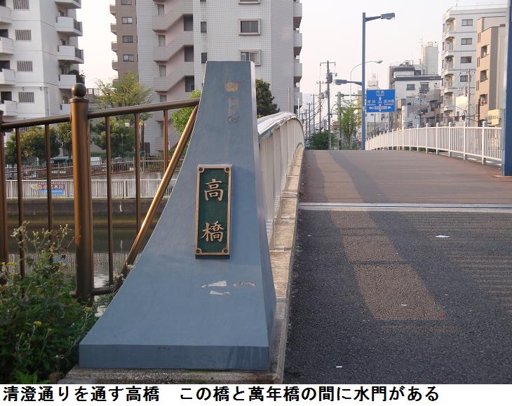 萬年橋に出ると、今日は小名木川の北岸の遊歩道を通ってみた。高橋を潜(くぐ)った所に高橋船着場というのがあった。東側に新深川橋があったが、写真に入れるには、太陽が眩しすぎてとても写真になりそうにない。隅田川に向けて高橋をカメラに収めた。遊歩道を出て、清澄通りを通す高橋を渡るとそこは清洲橋通り、左折すると直ぐに東京メトロ半蔵門線の清澄白河駅がある。一昨日、昨日と少々歩きすぎのように思ったので、此処から押上まで乗車し、昨日と同じ道を通って帰宅した。それでも万歩計では12374歩、8.0kmを歩いたことになっていた。