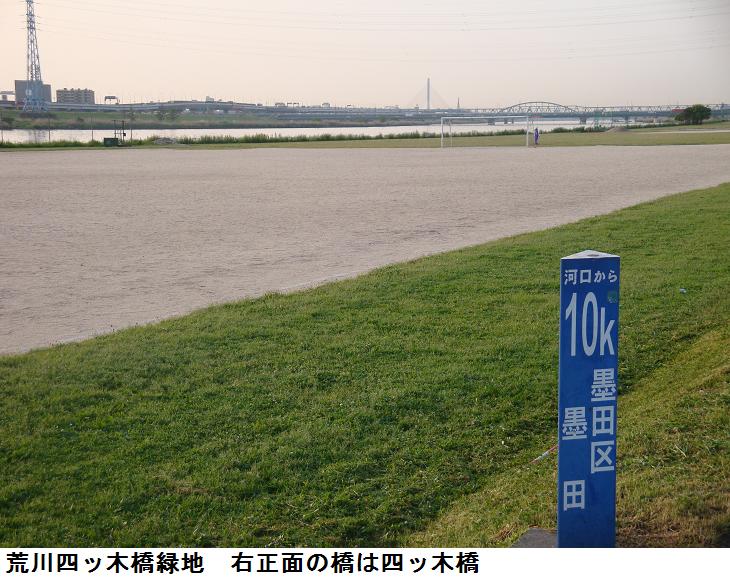 小便をしたくなったが、見渡す限りグラウンドと草むらばかり、どこかで立ちションでもしようかと思うが、それこそ木陰らきものもなく土手の下を並行する遊歩道に戻ると傍に水飲み場があり、どこかのおっちゃん(ホームレスかもしれない)が石鹸をつけて頭や顔を洗っている。そのそばに小さな小屋があり、よく見ると簡易トイレであった。やれやれ。
