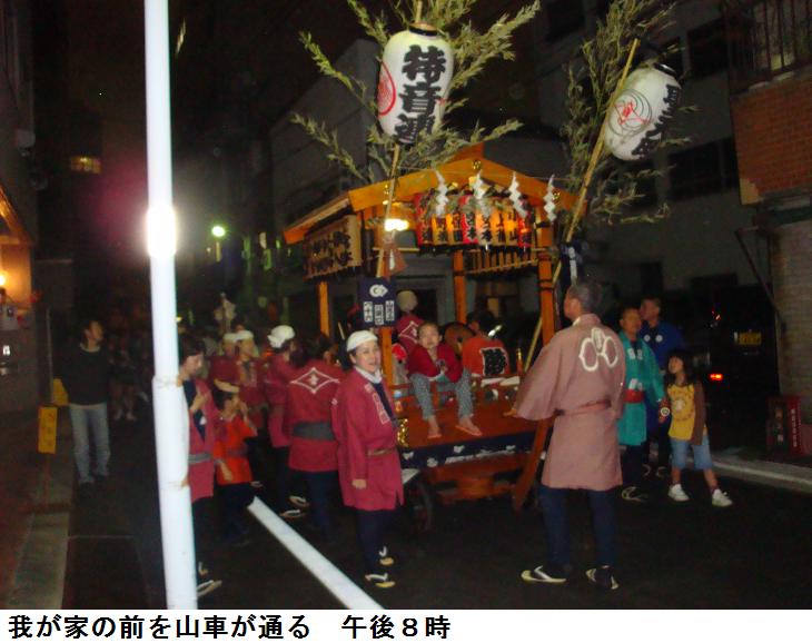 午後8時表が騒々しいので玄関を出てみると、町内神輿が通るところであった。山車と町内神輿をカメラに収めていると、「先生!」と声を掛けるものがいる。夜目でちょっとだれがわからなかったが、「かおりです」という声でKN嬢だとわかった。彼女は地中海クラブに勤務していて、毎年三社祭りには帰国している。今年はニューカレドニアから帰国したという。