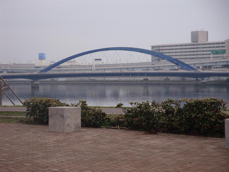 靖国通りを横切って、両国橋の西袂にある親水テラスの昇降口に立つ。浜町河岸の遊歩道に道をとり、隅田川にそって下る。新大橋を渡るのは今年になって初めてである。