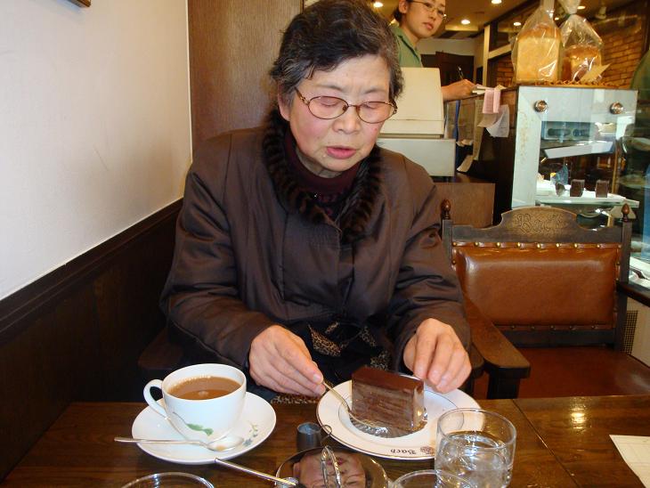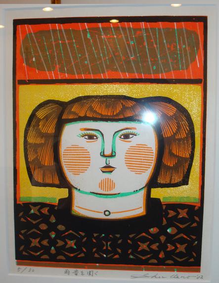 看板にはバッハがコーヒーカップを持っている像があり、人目を引く。店内は版画の額がずらりと飾られていて、かなりの客が入っていた。案内された席の壁に掛けられている版画に見入っていると、マスターらしい人が近寄ってきて、版画について説明してくれた。上野遒(うえのしゅう、1939年生れ)という人の作品であり、なかなかの人気画家であるということである。この喫茶店は前々から、話には聞いていた評判の喫茶店なのだが、入ったのは初めてである。