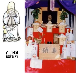 百花園園主鞠塢(きくう)は福禄寿の陶像を愛蔵していたが、ある初春の一日、百花園で風流に浸っていた文人たちが誰ともなく、その福禄寿に因む正月の楽しみ事はないものかという話になった。隅田村多聞寺の本尊は毘沙門天、須崎村の長命寺に弁財天が祀られている事が判ると、何とか七福神を揃えたいものと頭を捻り、詮索を重ねていくうちに、小梅村の三囲稲荷には恵比寿・大國の小祠があり、また、須崎村の弘福寺には黄檗禅(おうばくぜん)に関係の深い布袋和尚の木像を蔵することが判明した。残るは寿老人だが、それがなかなか見つからない。結局思案の挙句、百花園のある寺島村の鎮守白鬚明神は、白鬚と申し上げる以上、白い鬚のご老体のお姿であろうから、寿老人(神)には打ってつけだと、いかにも江戸人らしい機知を働かせ、ここにめでたく七福神が揃うことになった。