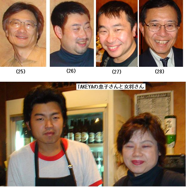 (25)HI君、通称イケさん。IBM勤務。 (26)KM君、通称ゲゲさん。清川で整骨院の院長さん。 (27)KS君、通称コーシ。ディズニーランドでケーキ作りに専念している職人さん。 (28)MN君、通称チャキちゃん。市立リハビリテーション病院の院長さん。(1)のMN君の兄上。