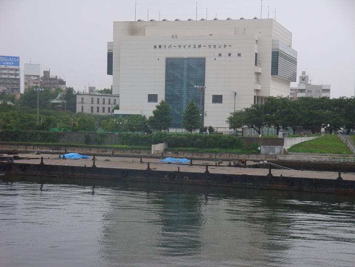桜橋の上から見ると、第1会場にも浮き桟橋が運曳されていた。