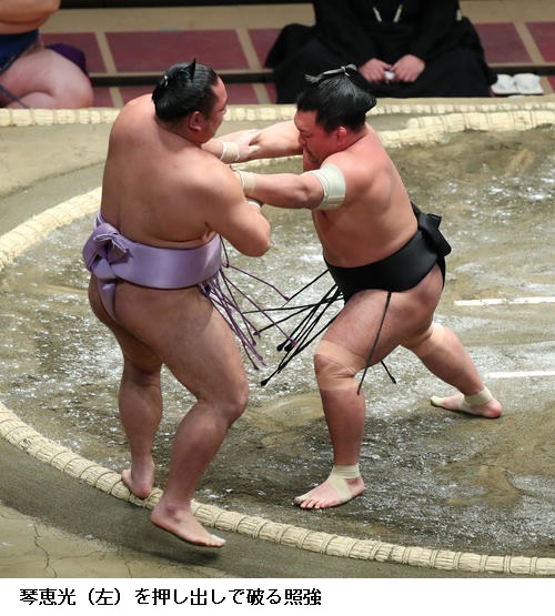 ▽照強に琴恵光は照強が押し出し。