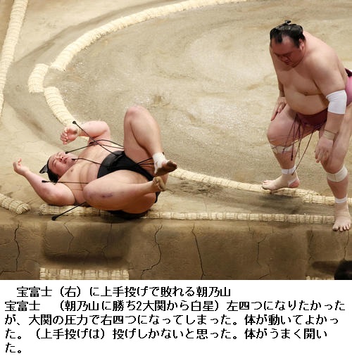 ▽宝富士に大栄翔は、宝富士がはたき込み。大栄翔は今場所初めての黒星を喫しました。