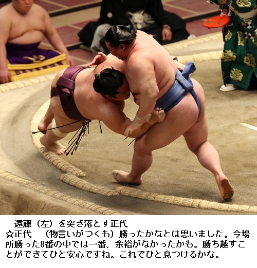 ▽正代は今場所初黒星に「相手の取りやすい角度、体勢になってしまった。いまいち自分の圧力が相手に伝わらなかった悪くはないと思うが、体をぶつけられてないというかそこが気になる。きょうみたいに一方的な相撲を取られないようにあすから切り替えていきたい。自分の相撲が取れるように徹底していけたらと思う」と冷静に話していました。