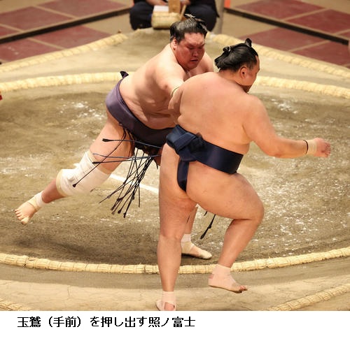 ▽関脇 照ノ富士に玉鷲は照ノ富士が押し出し。