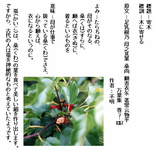 巻7-1357: たらちねの母がそのなる桑すらに願へば衣に着るといふものを