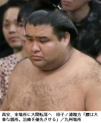 ▽大関降下 先々場所から貴景勝、栃ノ心、高安と3場所連続で大関降下力士が出るのは昭和以降初。