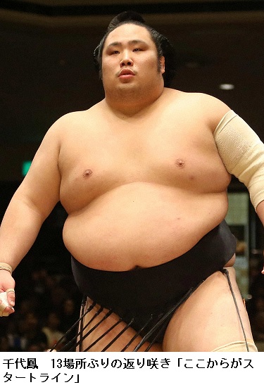 ▽Ⅴ字回復 大関経験者の照ノ富士が10場所ぶり、小結経験者の千代鳳は13場所ぶりの十両復帰。三役経験者の三段目以下陥落後の十両復帰は18年秋場所の常幸龍以来。