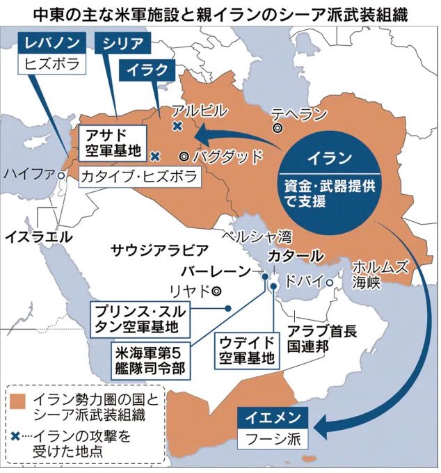 米国が反撃すれば、イラン革命防衛隊はアラブ首長国連邦(UAE)のドバイ、イスラエルのハイファといった親米国の主要都市を標的に、再び報復すると主張する。「テロリストの軍隊に基地を提供しているあらゆる米国の同盟国に警告する」との声明も公表した。